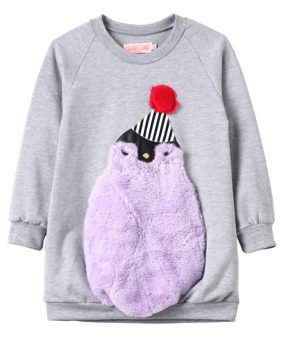 Ein wunderschönes Kleid mit grossen lustigen Party Pinguin vorne von bangbangcopenhagen
