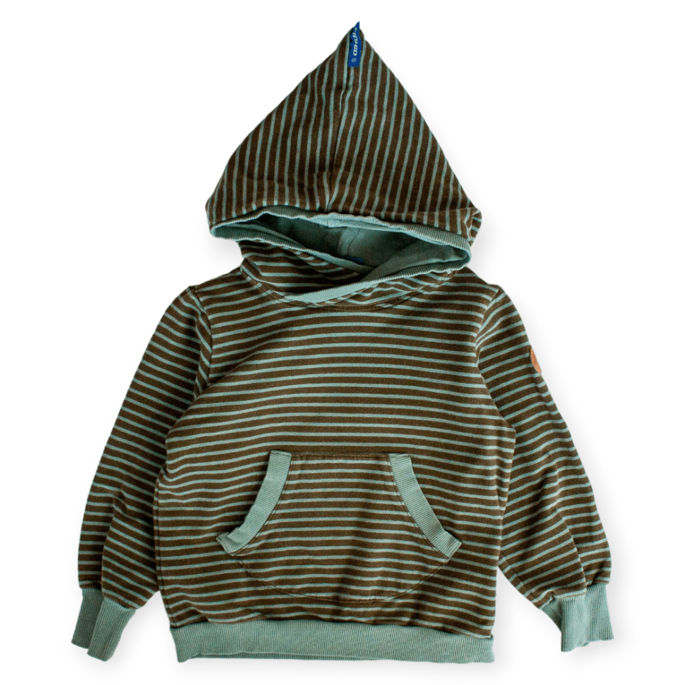 Bei diesem Artikel handelt es sich um FINKID Pullover Second Hand, welches folgende Eigenschaften hat: - Bauchtasche - langarm - mit Kapuze - gemustert - elastisch