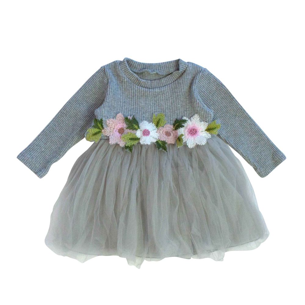 Kleid , langarm, Rundhals , Applikation