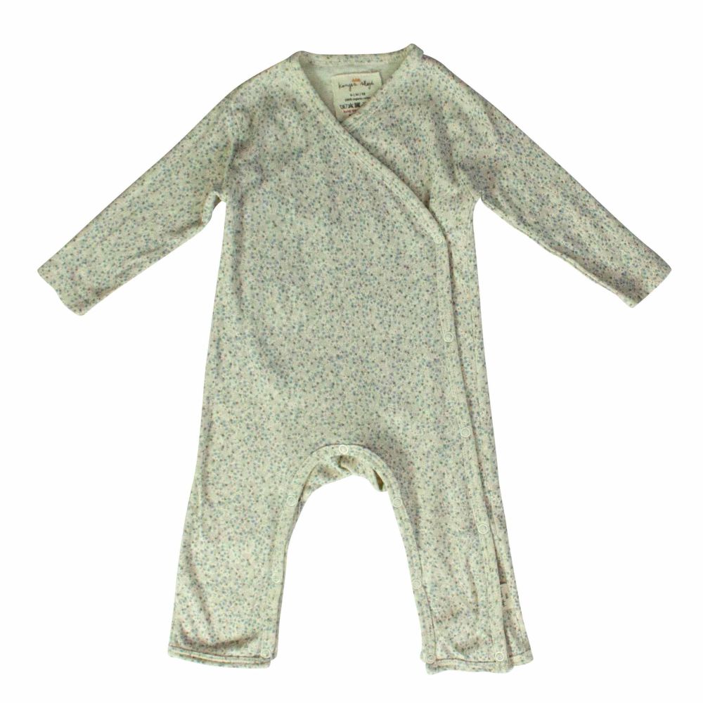 Bei diesem Artikel handelt es sich um Konges Slojd Strampler Second Hand, welches folgende Eigenschaften hat: - langarm - Schritt-Druckknöpfe - gemustert - Floral Print
