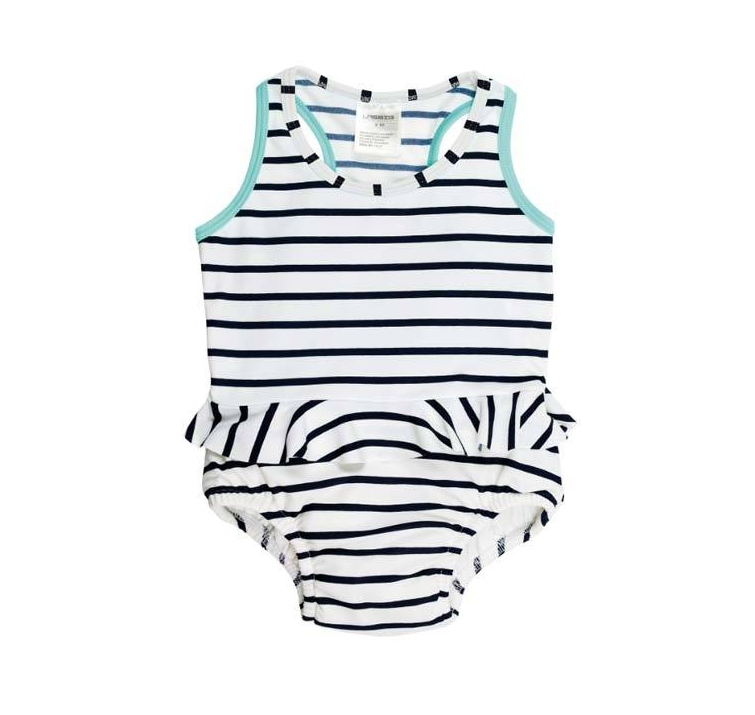 Süsser gestreifter Badeanzug von Lässig mit integrierter Schutz-Unterhose.