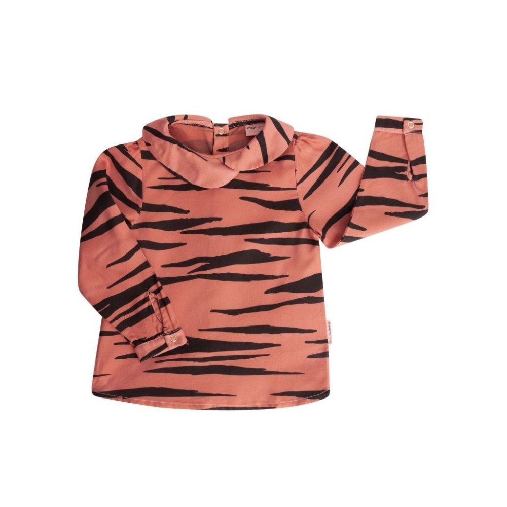 Wunderschöne Bluse mit Kragen in Zebra Look von maed for mini. Die hochwertige Bluse ist nicht nur stylisch, sondern hat einen hohen Tragekomfort. Dank den Knöpfen am Rücken ist das An- und Ausziehen ein Kinderspiel.