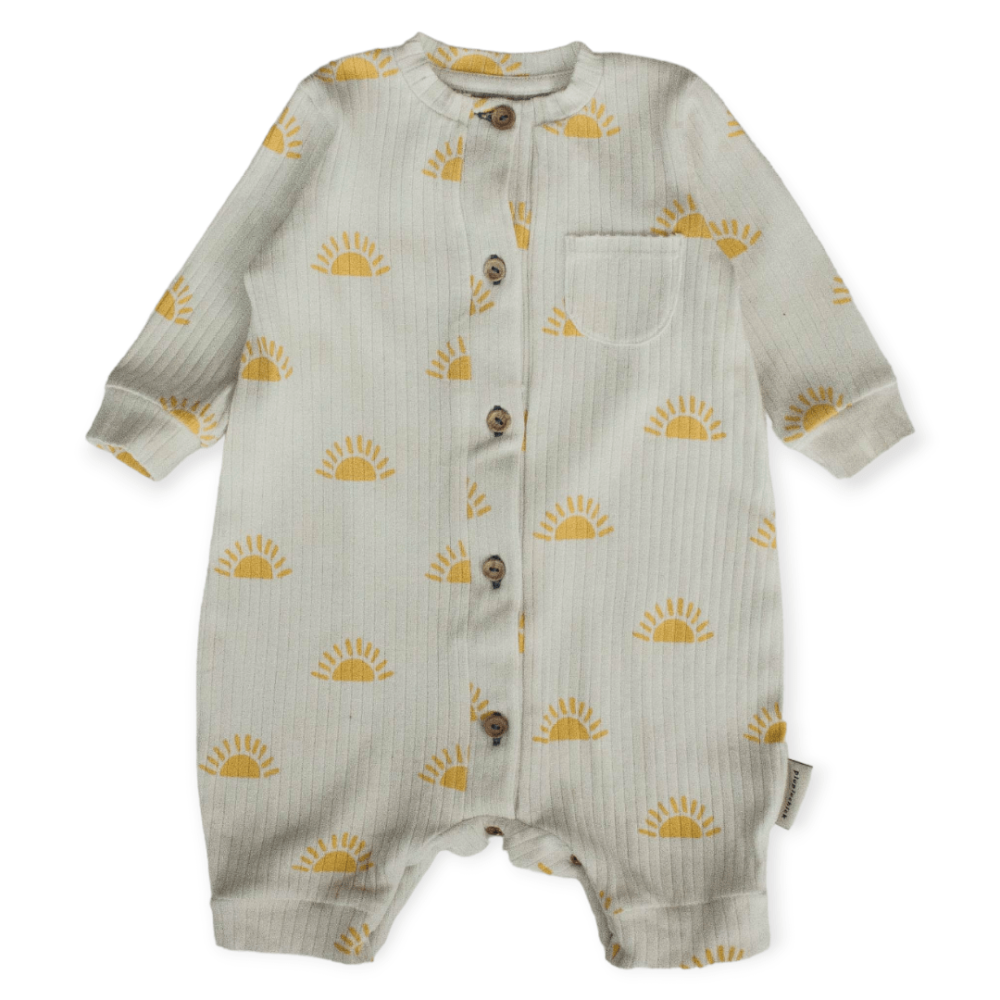 Bei diesem Artikel handelt es sich um piupiuchick Einteiler Second Hand, welches folgende Eigenschaften hat: - langarm - Rundhals - Schritt-Druckknöpfe - Knopf - gemustert - elastisch