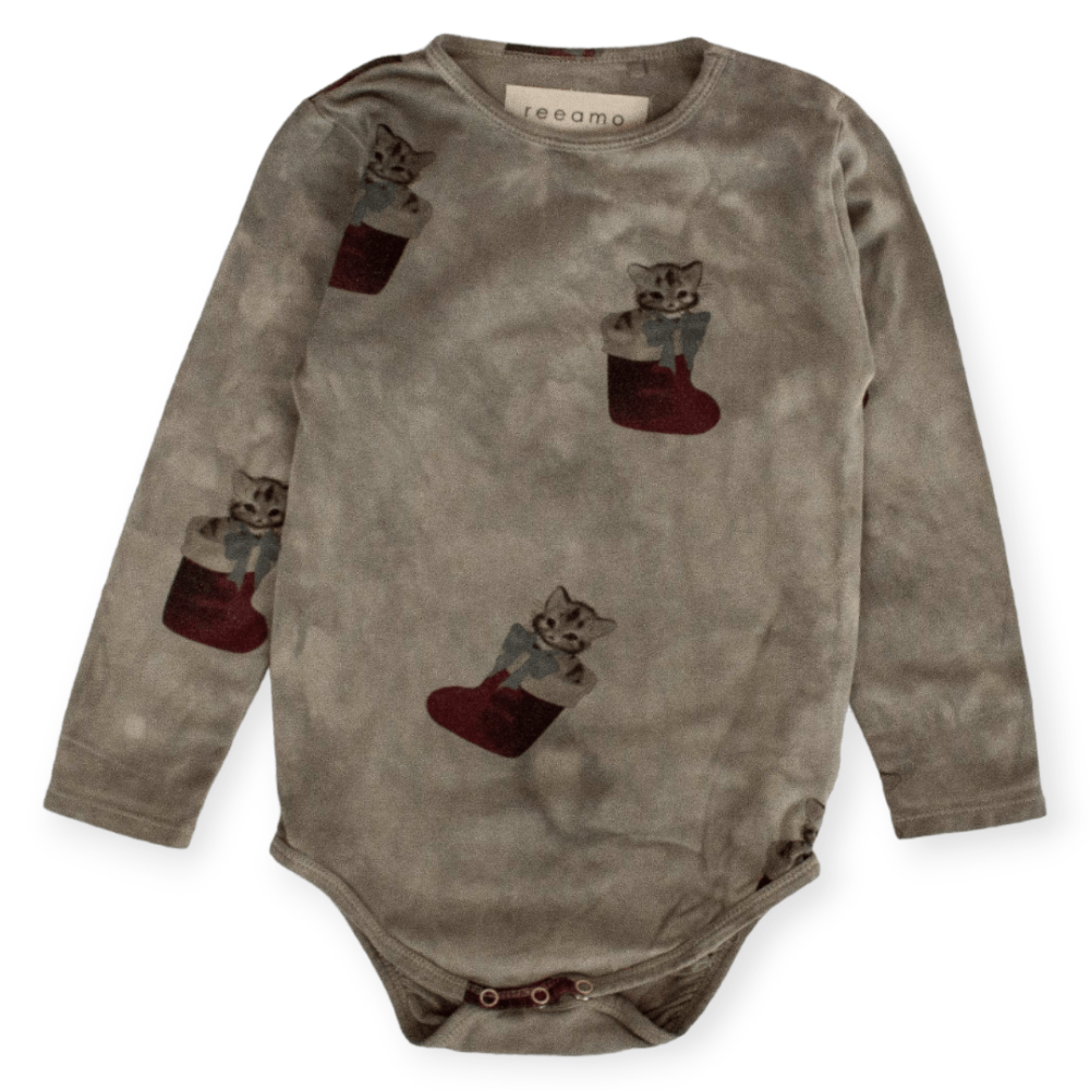 Bei diesem Artikel handelt es sich um r e e a m o Body Second Hand, welches folgende Eigenschaften hat: - langarm - Rundhals - Schritt-Druckknöpfe - gemustert - elastisch