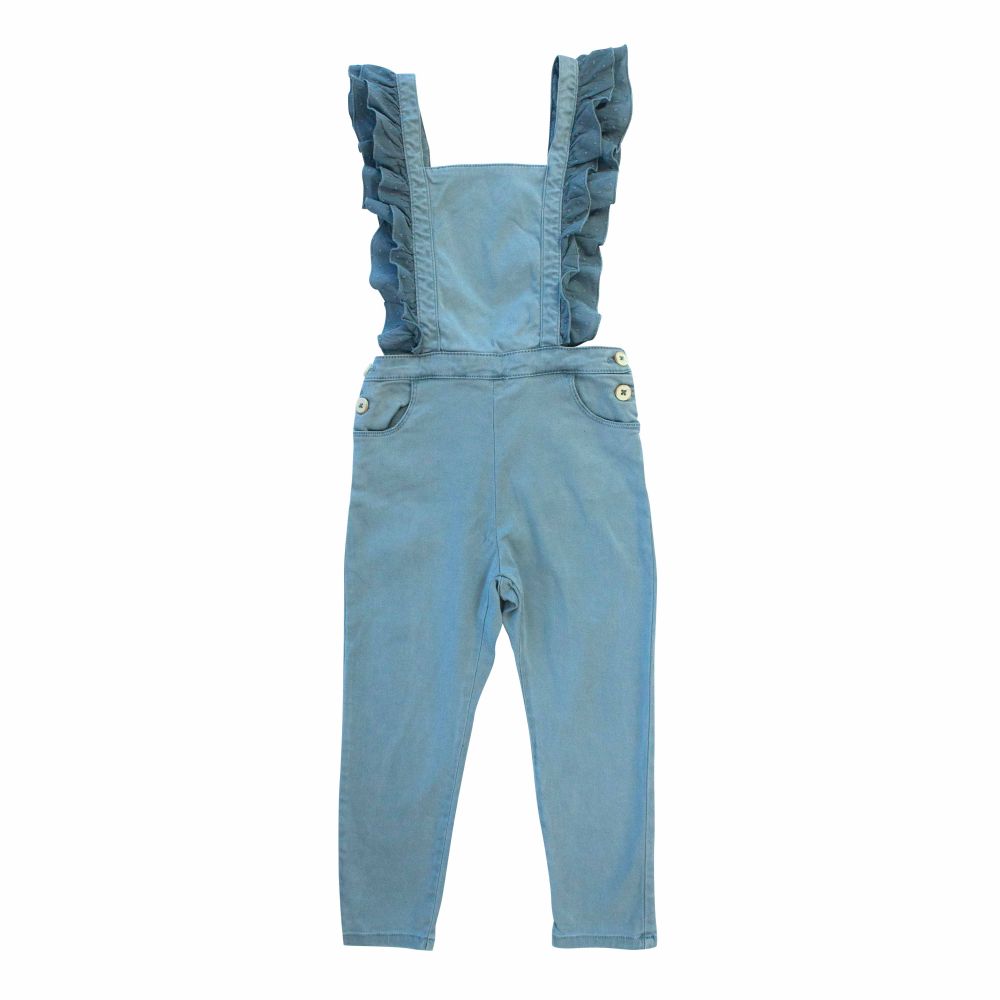 Bei diesem Artikel handelt es sich um Zara Latzhose Second Hand, welches folgende Eigenschaften hat: - Bund mit Gummizug - Knopf hinten - Rüschchen